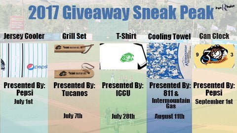 Boise Hawks 2017 Promotional Stadium Giveaways