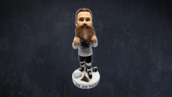 A 2017-18 Sharks/Maple Leafs matchup included a fight that got a bit… hairy. Relive the moment between Jumbo and Kadri with this Thornton Fighting bobblehead, complete with real beard hair (missing a chunk). This item is only available through the ticket pack, which includes 1 game ticket and 1 bobblehead.