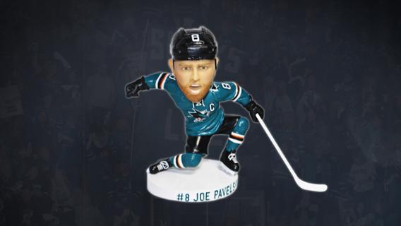 Step 1: Score a goal. Step 2: Celebrate with an arm pump. Captain Joe Pavelski celebrates every goal with his signature arm pump. Pick up this Pavelski Bobblehead to celly with him. This item is only available through the ticket pack, which includes 1 game ticket and 1 bobblehead.