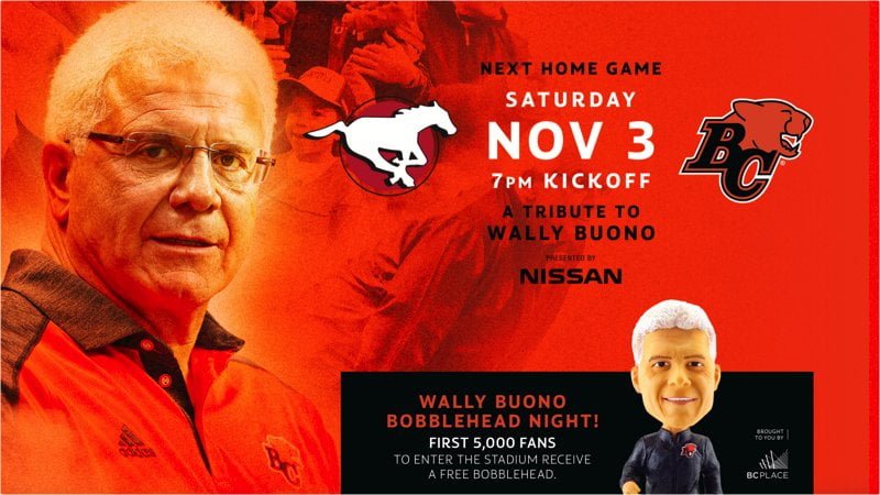 11/3/2018 BC Lions – Wally Buono Bobblehead – First 5,000 Fans